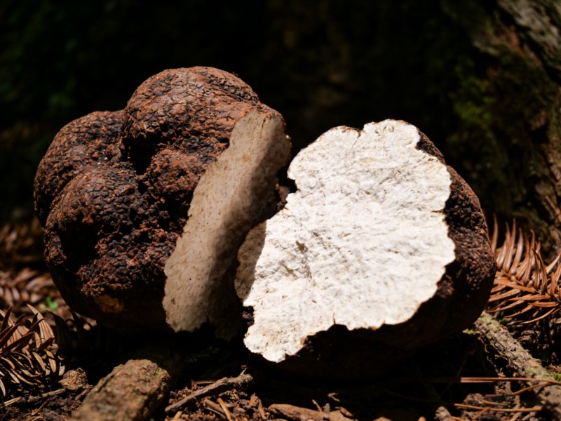 茯苓的生长环境苛刻,偏爱海拔1000-2800米的针叶林地带,那里气候温润,土壤疏松肥沃,富含腐殖质,为其菌丝的生长提供了生长条件。成熟的茯苓菌核呈类球形、椭圆形或不规则的块状,大小不一,外皮薄而粗糙,颜色从深褐色到棕褐色不等,内部则是细腻的白色或淡棕色组织,质地坚实而有弹性。